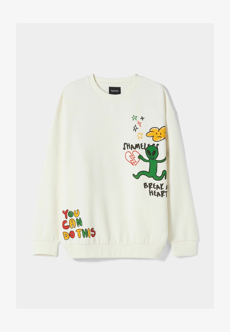 Bershka Funny Print Sweatshirt White Zalando De