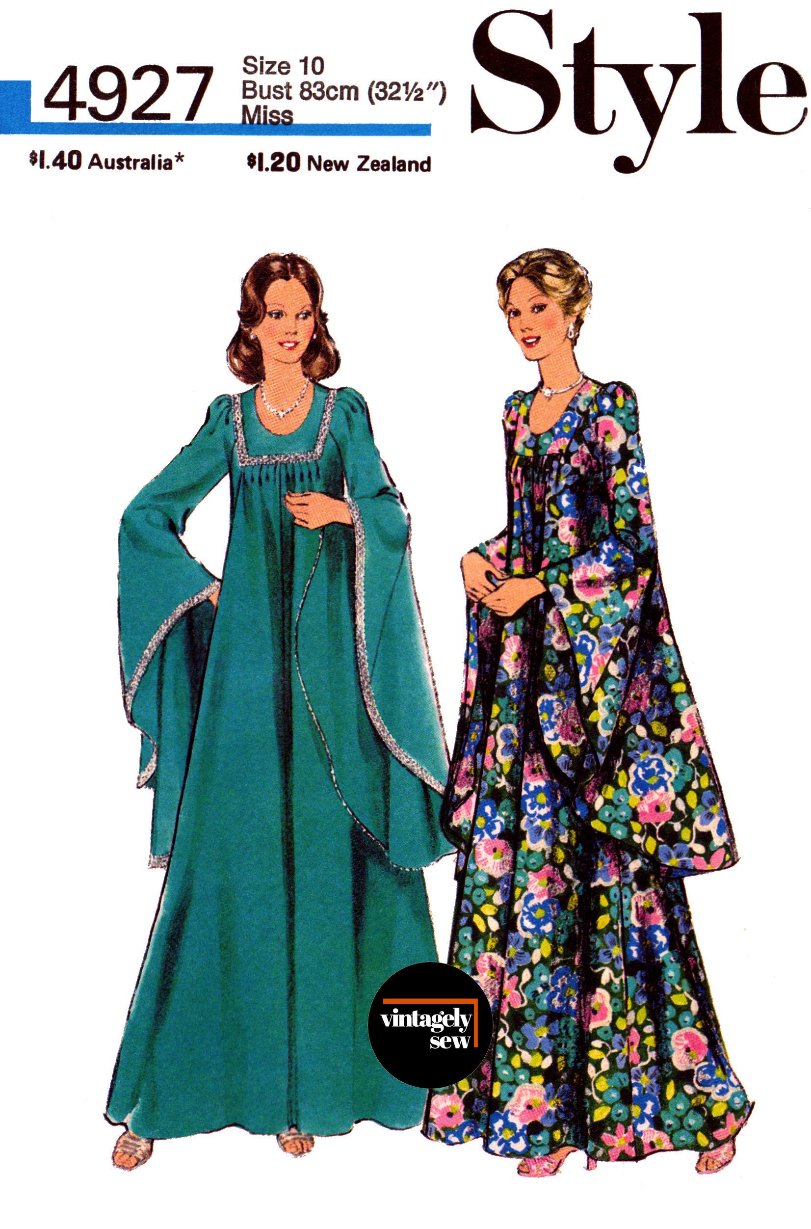 70s Evening Caftan With Godet Sleeves Bust 32 5 83 Etsy